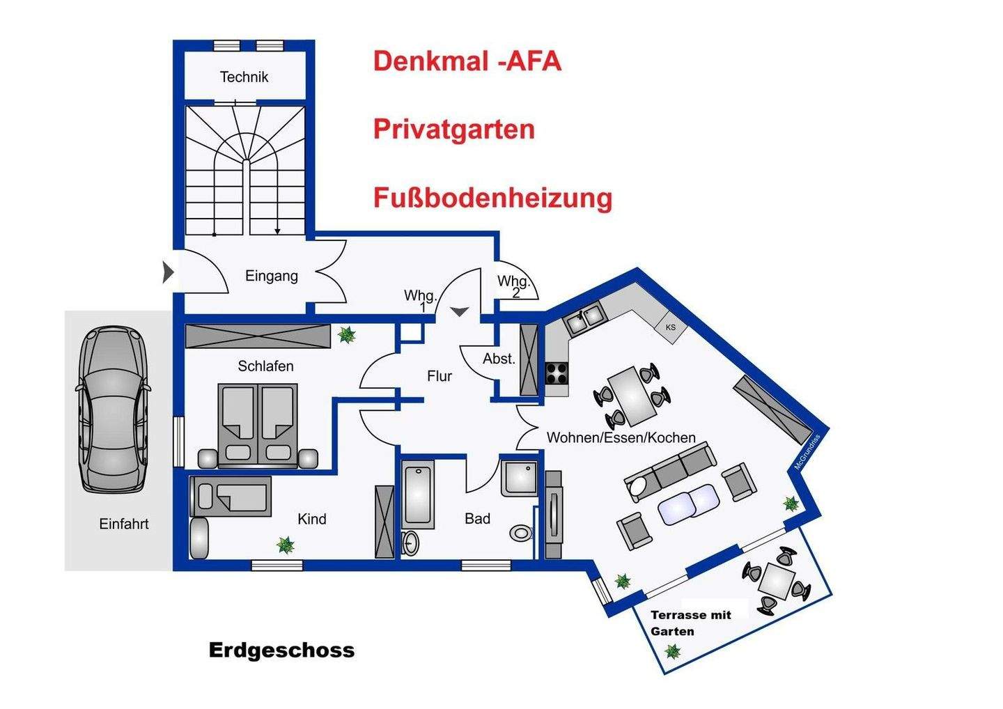 3 - Raum Wohnung mit Terrasse und priv. Garten! Hohe Denkmalabschreibung !!!