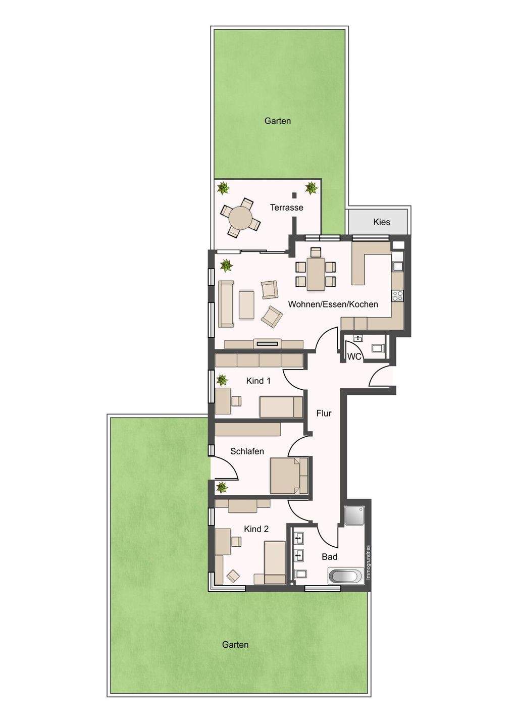 • Westansicht mit 2 Gärten -