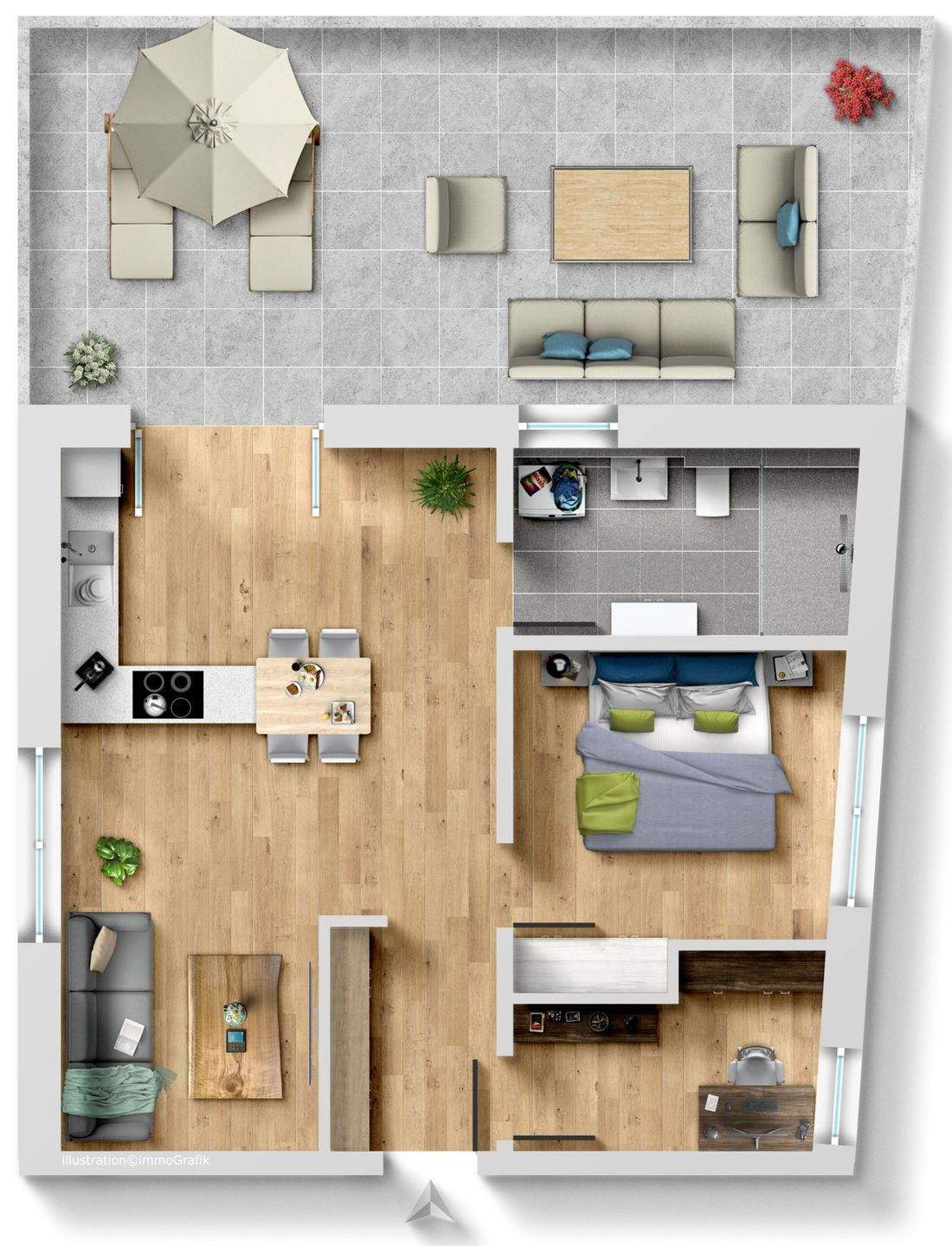 • Blick auf die Dachterrasse -