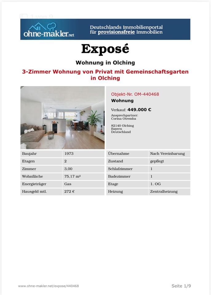 Sie befinden sich hier: 3‑Zimmer‑Wohnung in Olching – ruhig, hell & mit Weitblick in Olching - 3362525100-196-5589 | 1A-Immobilienmarkt.de