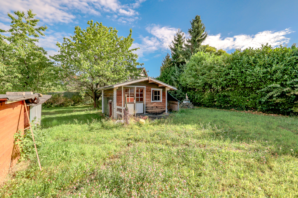 Grundstück und Lage Das freistehende Wohnhaus steht auf einem weitläufigen Grundstück von 1.157 m² und bietet reichlich Raum für Gartenliebhaber, Kinder oder Hobbygärtner. Neben dem gepflegten Garten befinden sich auf dem Grundstück ein gemütliches Gartenhaus, ein Schuppen sowie eine überdachte Terrasse, die zum Verweilen im Freien einlädt.