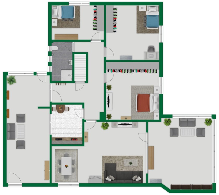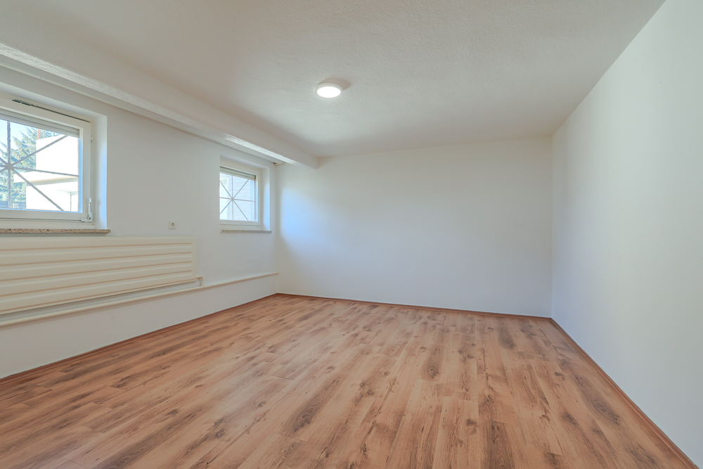 Untergeschoss (ebenerdig zur Einfahrt): Das Untergeschoss verfügt über drei beheizte Hobbyräume, die vielseitig nutzbar sind – etwa als Gästezimmer, Büro, Werkstatt oder Fitnessbereich. Zudem stehen hier eine Waschküche, ein Badezimmer mit Dusche, ein separates WC sowie der Heizungskeller zur Verfügung.