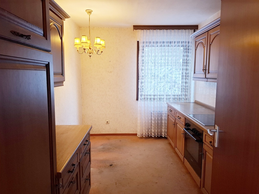Balkon und Terrasse massiver Keller mit 36 cm Außenwänden und voller Raumhöhe. Glasfaseranschluss, Satellitenantenne EG: 3 Zimmer, Balkon, Küche mit EBK, Tgl.-Bad mit Wanne, Tgl.- Gäste-WC KG: 2 Zimmer, Bad mit Dusche ohne Fenster, Heizungsraum, Vorraum mit Einbauschränken großer Garten 1 Pkw- Stellplatz