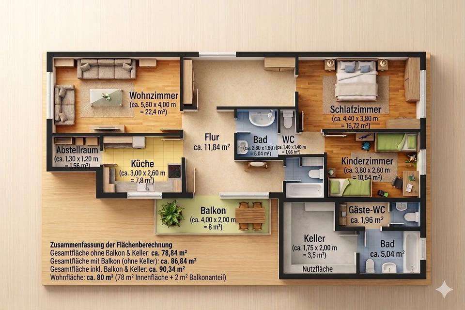 Zimmeranzahl :3.5 Gesamtgröße :ca. 80,00 m² Stand vom :31.03.2026
