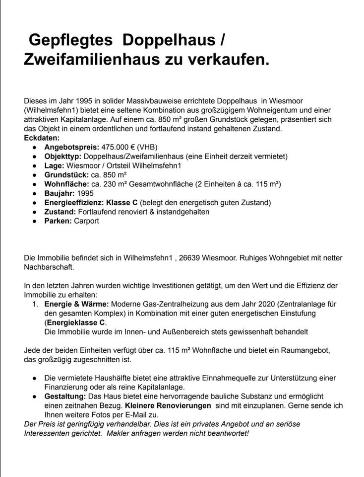 Sie befinden sich hier: DH in Wiesmoor zu verkaufen in Aurich Egels und Wallinghausen - 3363655226-208-3033 | 1A-Immobilienmarkt.de