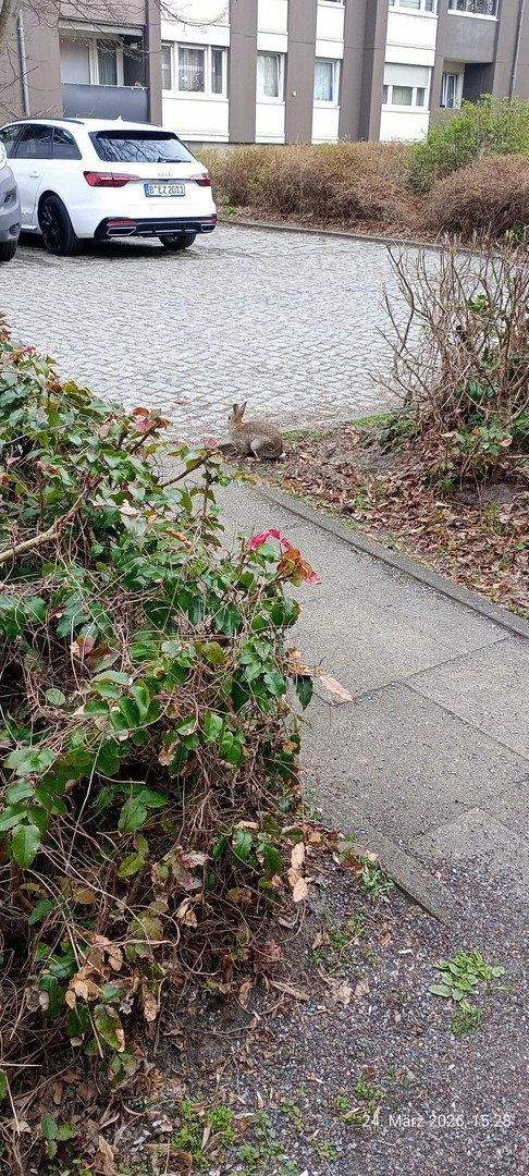 • ein Kaninchen vor dem Haus -