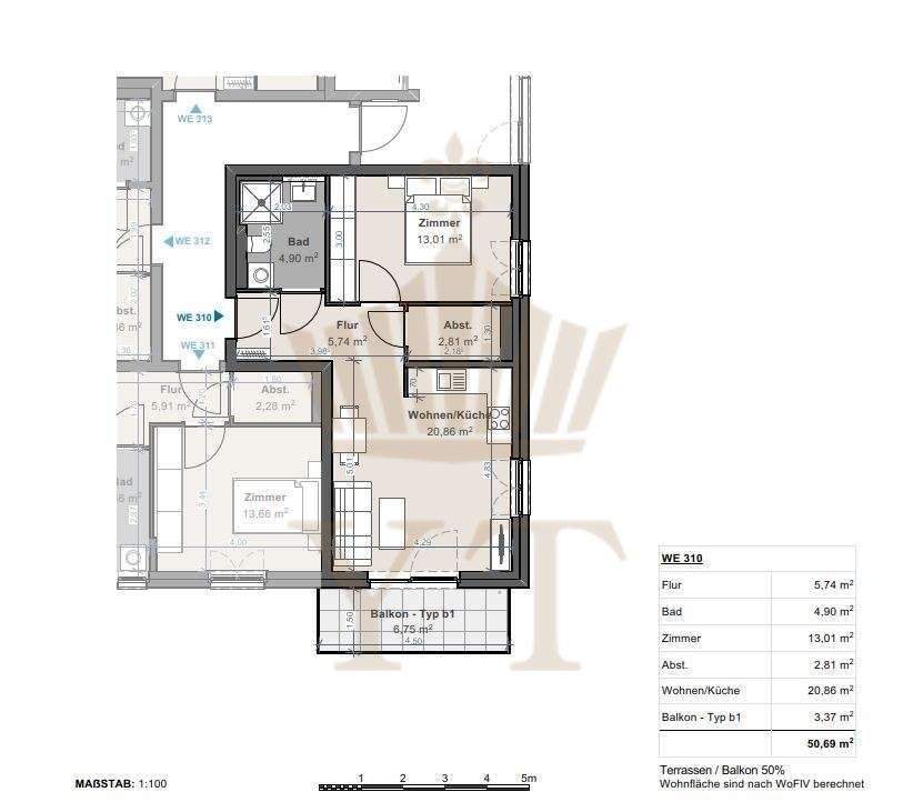 | Wohnfläche: | ca. 50,70 m² |