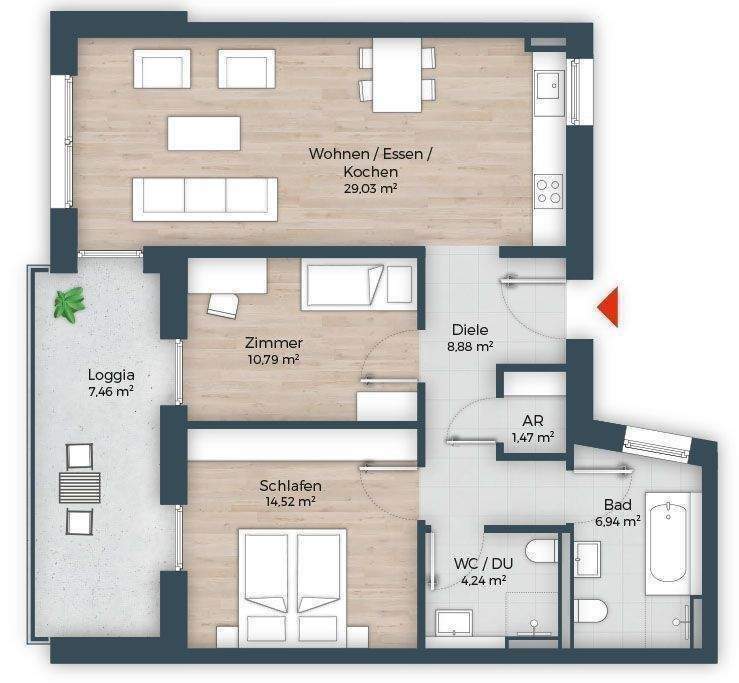 Grundriss Wohnung 12B -