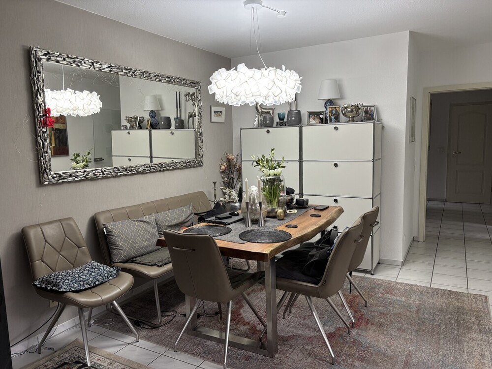 Die Wohnung ist schön hell ausgestattet. Als Bodenbelag wurde eine einheitliche weiß-graue Fliese verlegt. Sehr schön ist der kleine Erker im Wohnzimmer, der sich als Leseecke anbietet.
