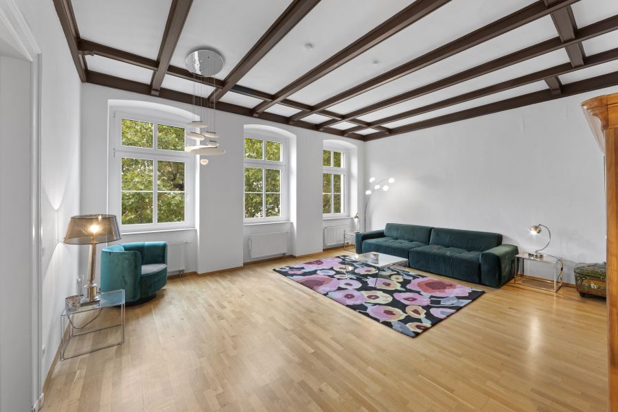 - Historische Deckenbalken im Wohnzimmer (ca. 30 m²)