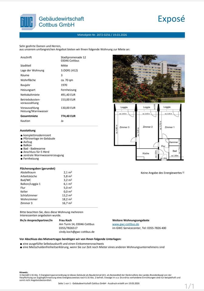 Zimmeranzahl :3 Gesamtgröße :ca. 70,00 m² Stand vom :01.04.2026