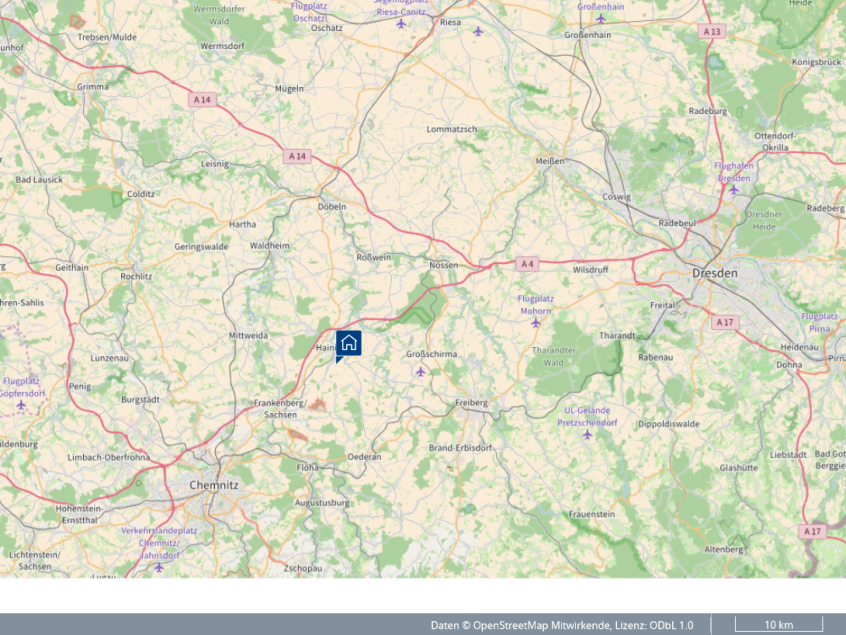 Die Städte Chemnitz und Dresden sind über die Autobahn in weniger als einer halben Stunde erreichbar. Nähere Infos zur Gellertstadt Hainichen finden Sie unter: www.hainichen.de