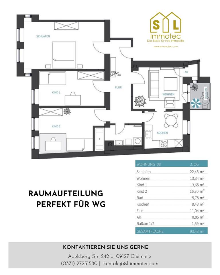 Sie befinden sich hier: ++Hochwertige 4 Zi. Whg mit Balkon u. neuer Einbauküche WG geeignet+++ in Chemnitz Hilbersdorf - 3364397177-203-26113 | 1A-Immobilienmarkt.de