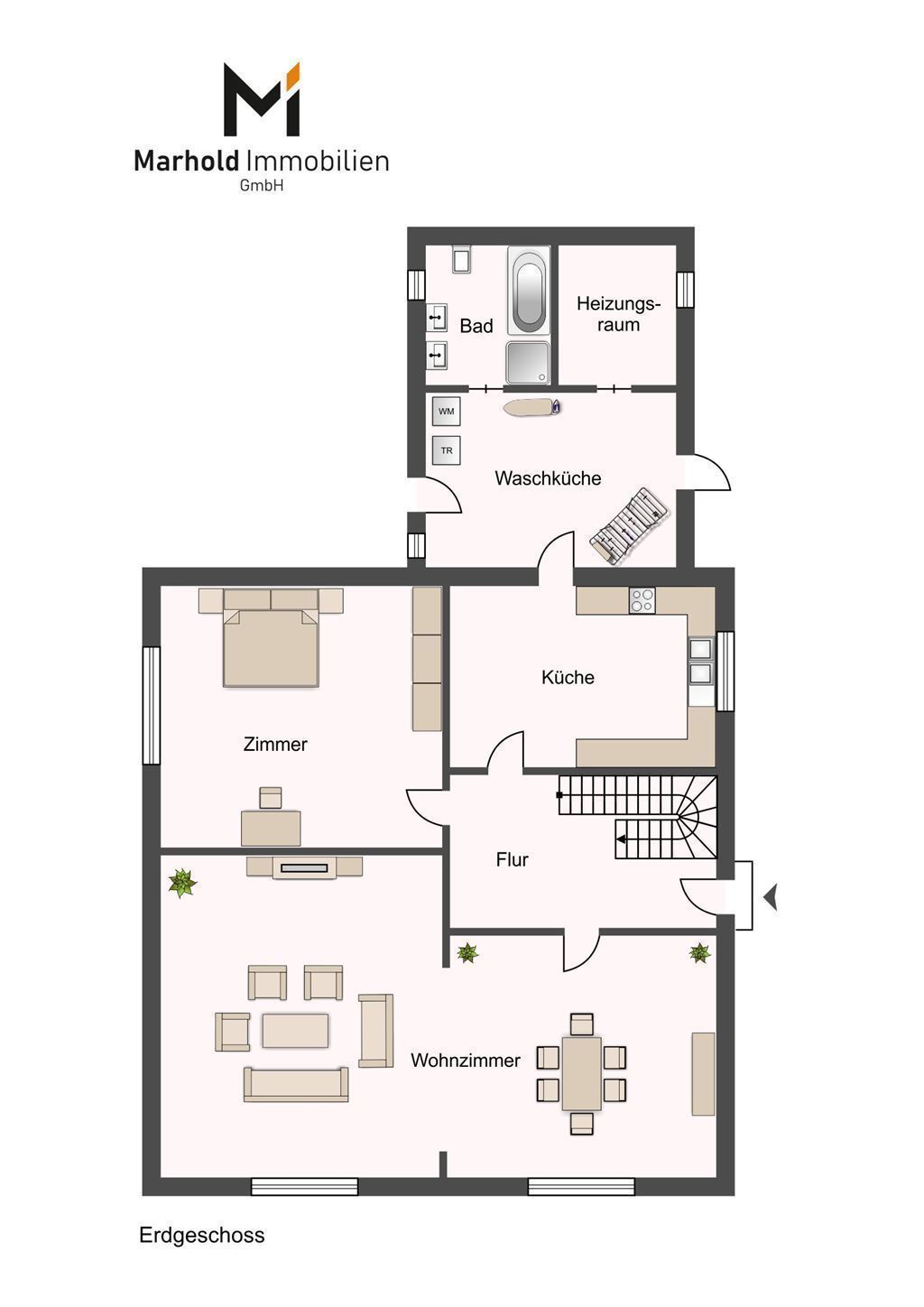 Eine Gewähr für die Richtigkeit sämtlicher im Exposé enthaltener Angaben und Abmessungen wird trotz sorgfältiger Bearbeitung von Daten, Bildern und Informationen nicht übernommen.