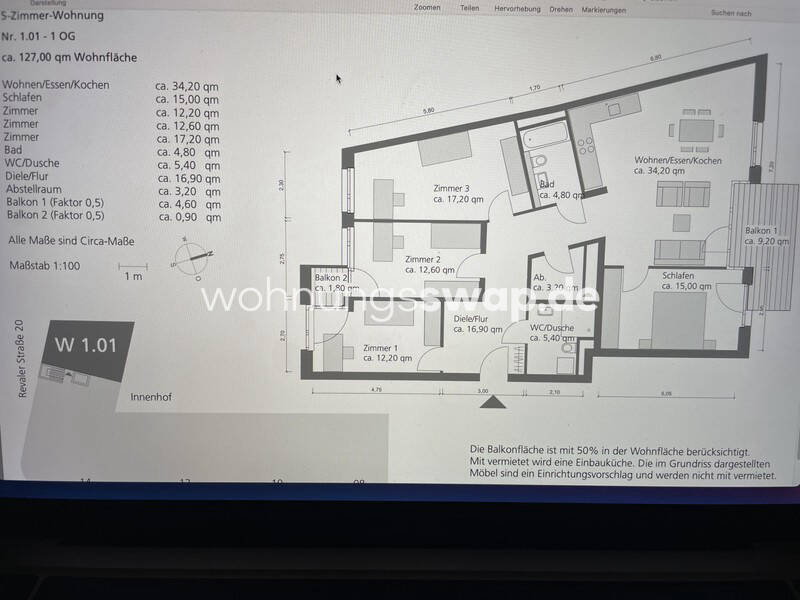 Zimmeranzahl :5 Wohnfläche :ca. 123,00 m² Etage :1 Balkon :
