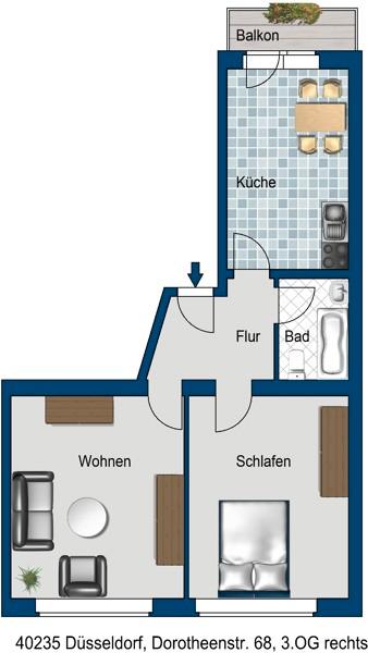 Sie befinden sich hier: Flingern: Tolle 2-Zimmer-Wohnung mit modernem Bad und Balkon in Düsseldorf Stadtbezirk 2 - 3365061771-203-2100 | 1A-Immobilienmarkt.de