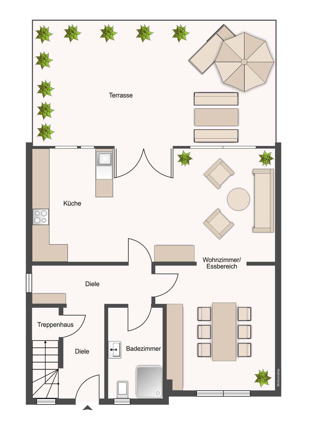 • Tageslicht-Bad mit ebenerdiger Dusche im Erdgeschoss -