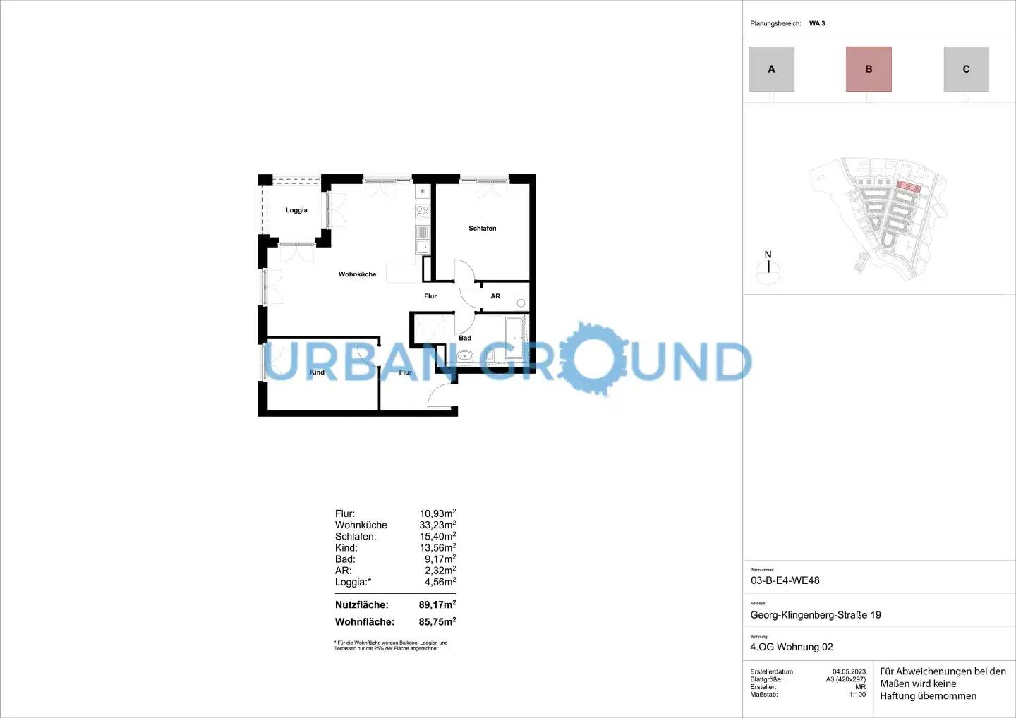 Zimmeranzahl :3 Gesamtgröße :ca. 85,00 m² Wohnfläche :ca. 85,80 m² Baujahr :2023 Frei ab :sofort Etage :4 Balkon :