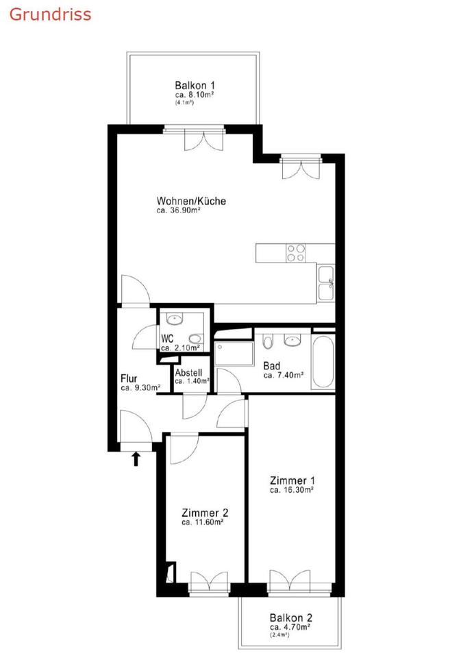 Gesamtgröße:ca. 92,00 m²
