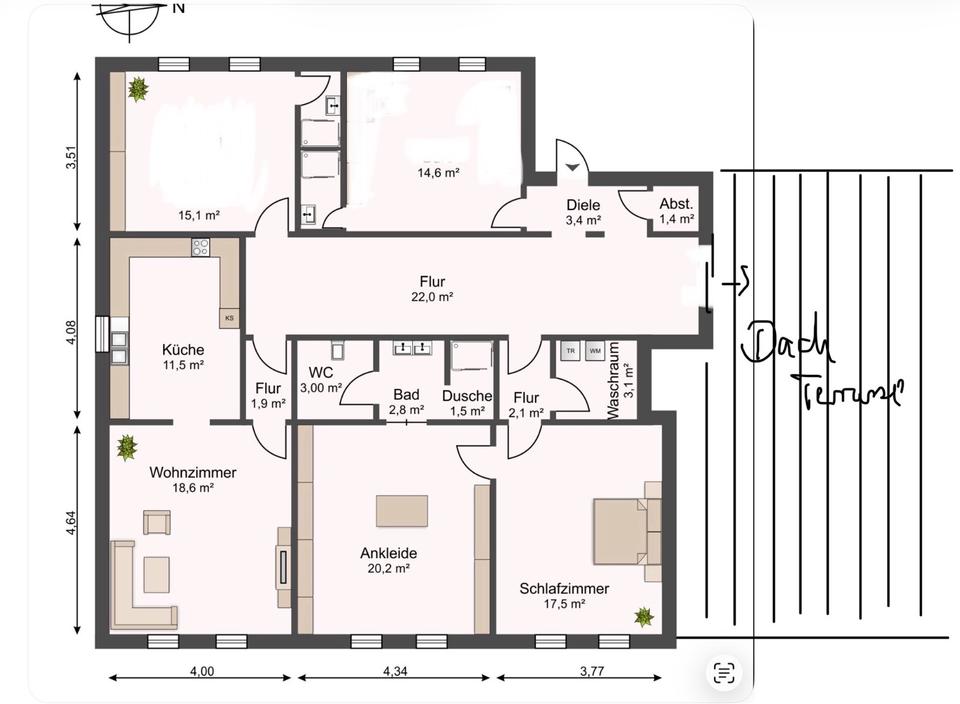 5 Zi. Eigentumswohnung mit Dachterrasse (140qm + 50qm)