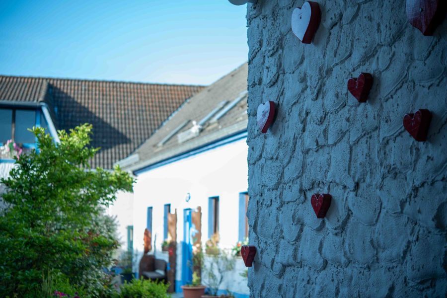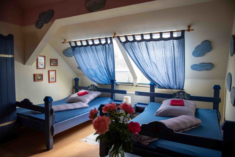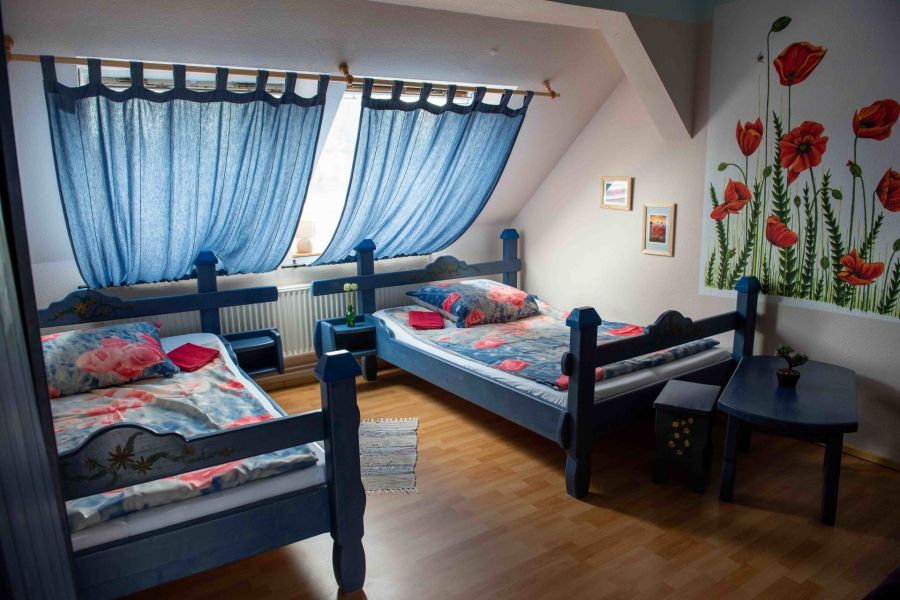 20 Gästezimmer mit eigenen Bädern, gepflegte Einrichtung, Aufteilung auf zwei Seitenflügel (EG + DG).