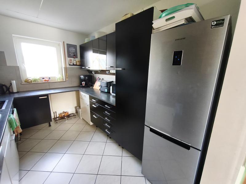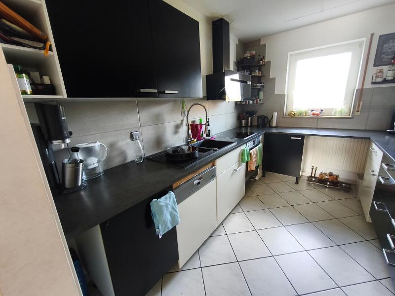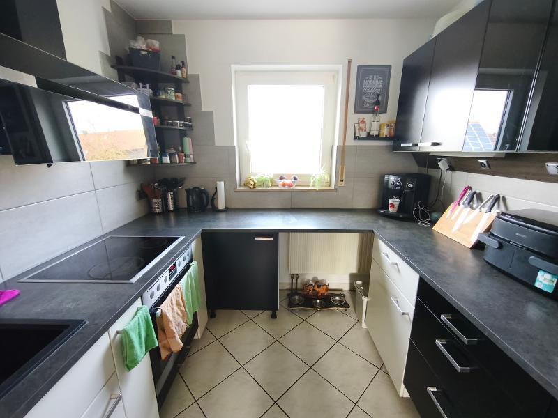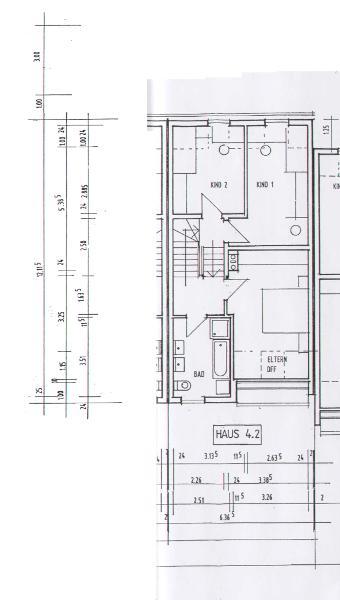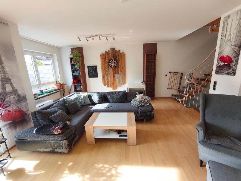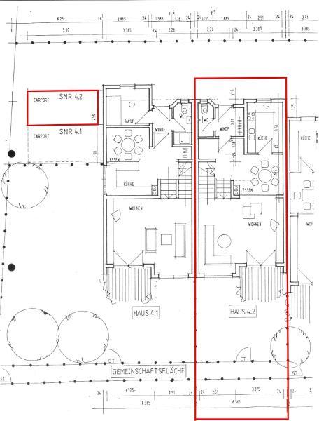 Im Erdgeschoss des Hauses befinden sich ein großzügiger Wohn- /Essbereich, die Küche und ein Gäste – WC (mit Dusche). Vom Wohnbereich aus hat man Zugang zum mit Rasen angelegten Garten. Als Bodenbelag sind Fliesen im Eingangsbereich, der Küche und dem Gäste – WC verlegt, im Wohn- /Essbereich ist Laminatboden zu finden. Das Reihenmittelhaus wird mit Einbauküche vermietet, die Elektrogeräte sind nicht Bestandteil des Mietvertrages, und werden bei Defekt nicht vom Vermieter ersetzt.