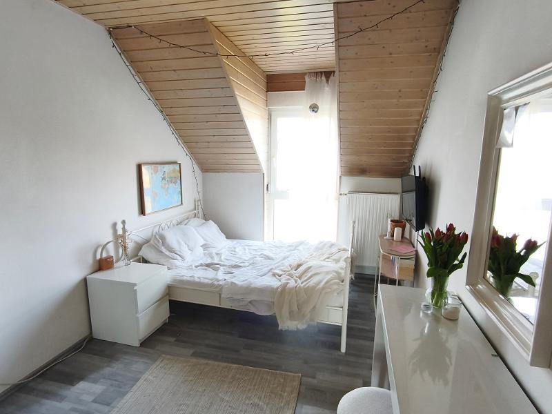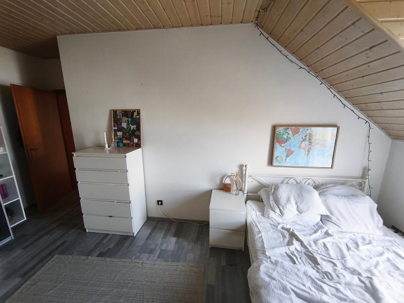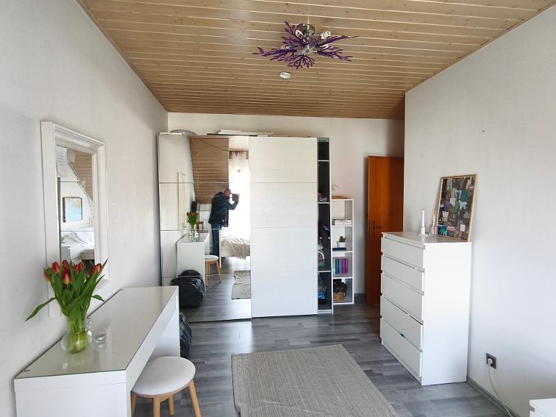 Im Dachgeschoss befinden sich ein Bad mit Badewanne und Dusche sowie drei Schlafräume. Das Bad ist gefliest, die Schlafräume sowie der Flur werden vor Einzug mit neuem Laminatboden versehen werden. Der Dachboden ist ebenfalls ausgebaut und beheizbar. Er kann als weiteres Zimmer oder als Lagerfläche genutzt werden.
