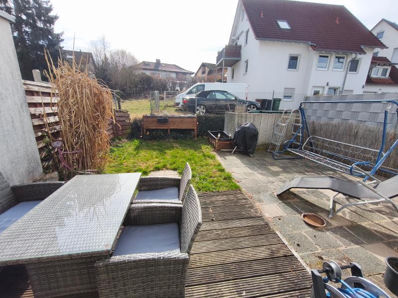 Zum Objekt gehören ein angelegter Garten mit nach Süd-West ausgerichteter Sonnenterrasse und ein Carportstellplatz. Durch ein Gartentor hat man im hinteren Bereich des Gartens Zugang, so dass der Rasenschnitt zur Entsorgung nicht durch das Haus getragen werden muss.