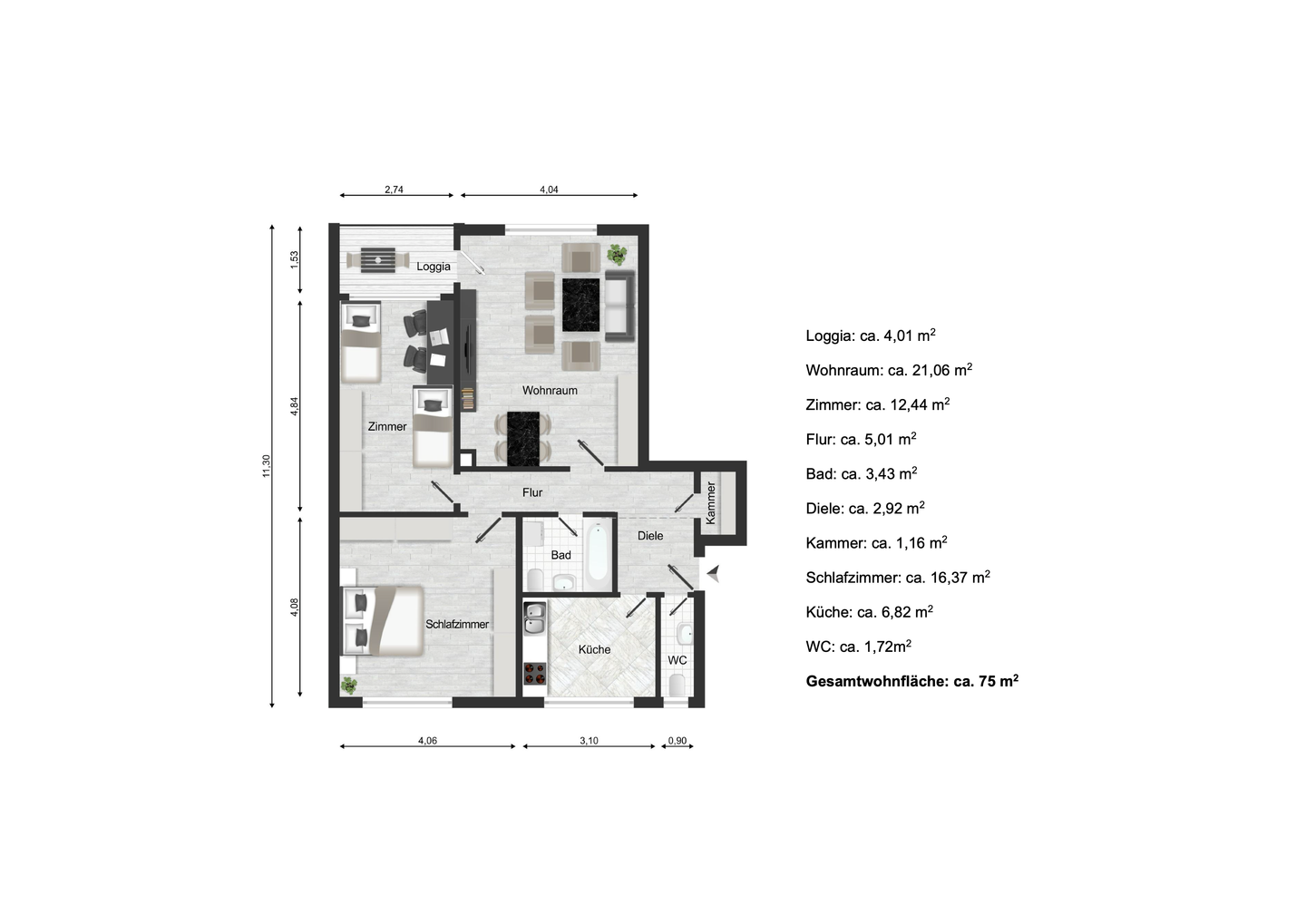 Wohnfläche:ca. 75,00 m²