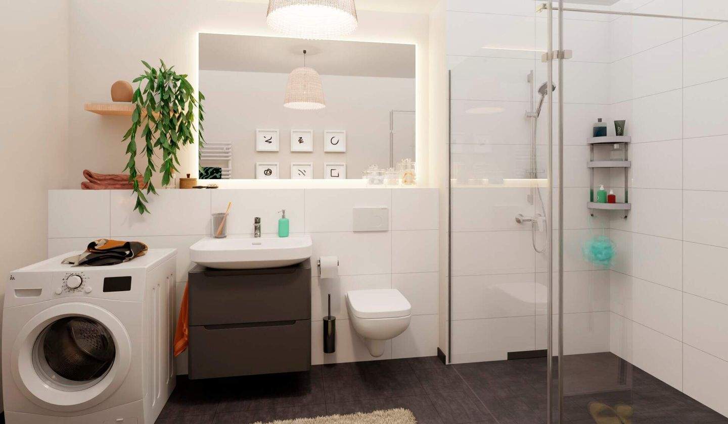 Eine bodengleiche Dusche gestaltet die Morgenrouti - 2 Zimmer Etagenwohnung in Düsseldorf