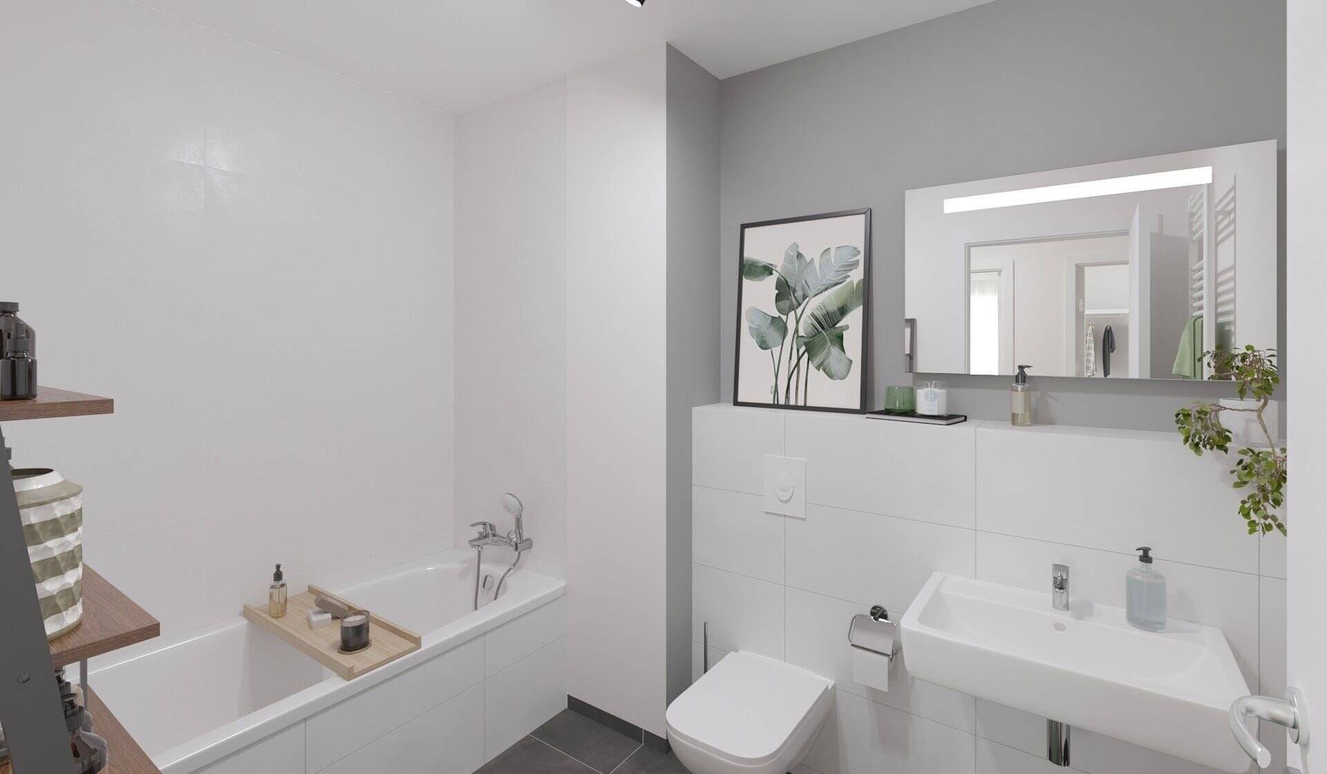 Ein Badezimmer inklusive Wanne -