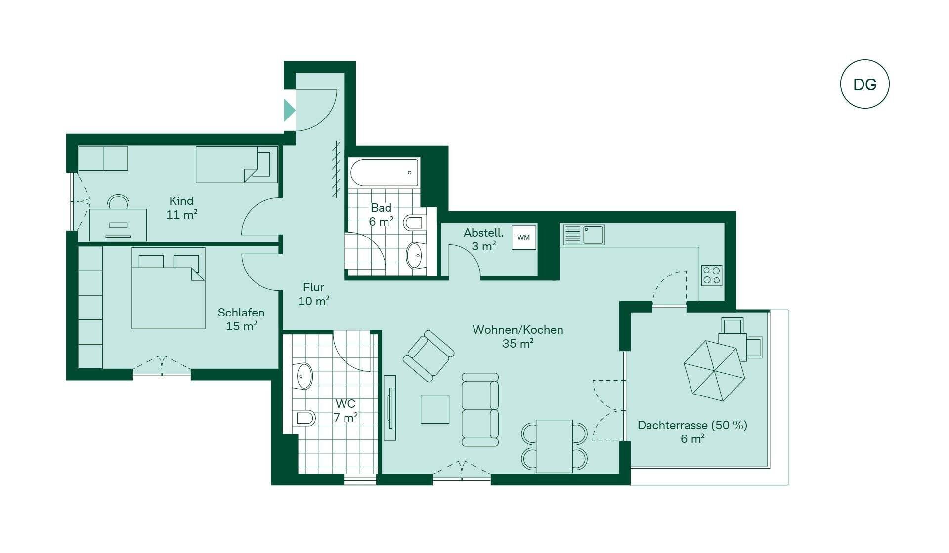 Sofort bezugsfertig - 3-Zi. mit 12 m² Dachterrasse und Gäste-WC