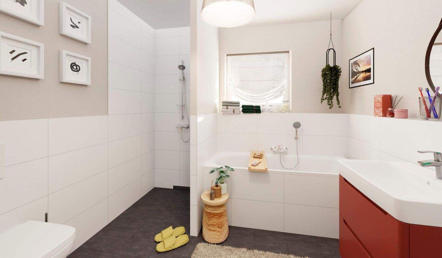 Das moderne Badezimmer mit bodengleicher Dusche un - Etagenwohnung mit 76,20 m² in Zossen zum Kaufen