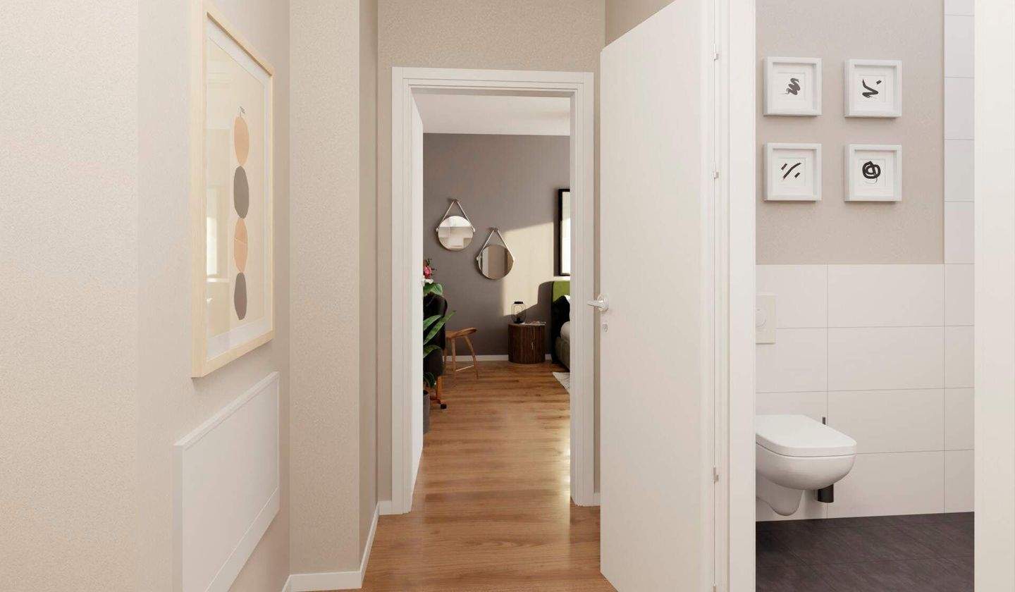 Der einladende Flur führt zu einem stilvollen Wohn -