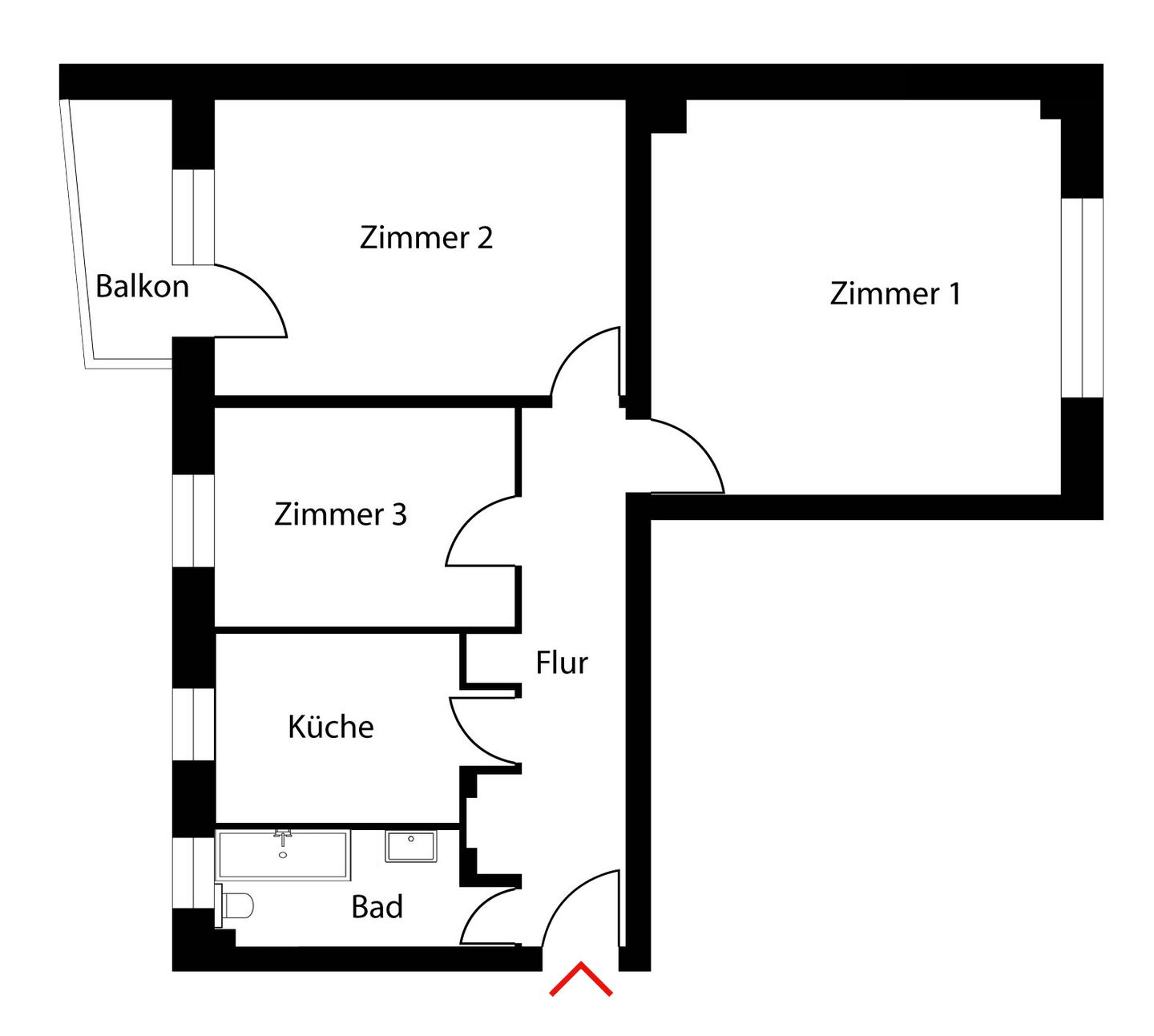 Zimmer mit Blick zum Balkon - 2,5-Zimmer-Wohnung mit Balkon im Herzen von Kreuzberg