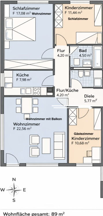Gesamtgröße:ca. 89,00 m²