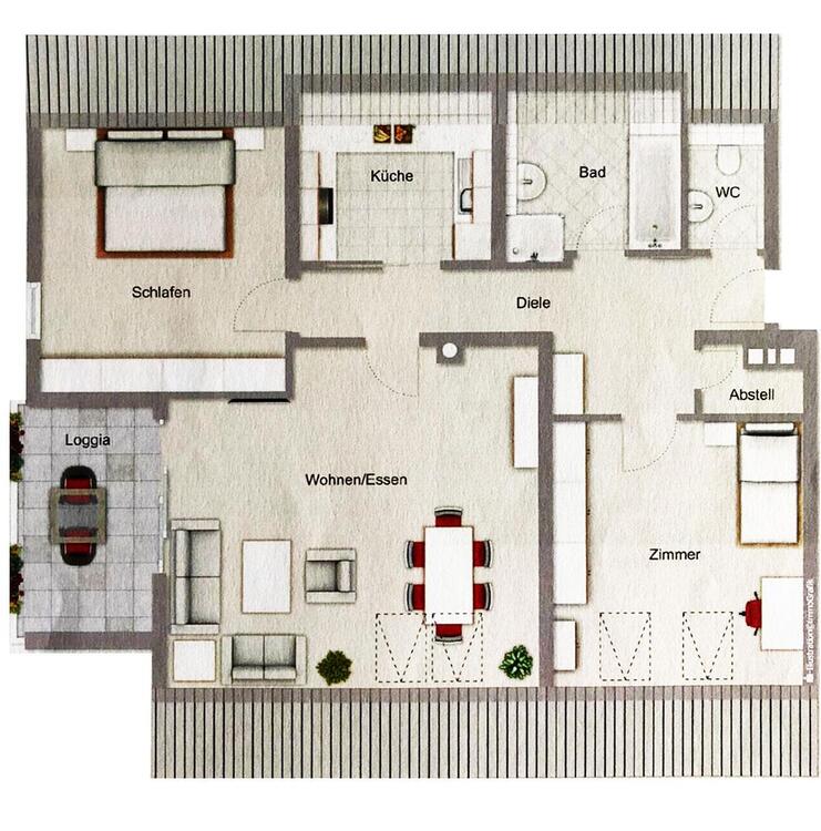 Eine Gewähr für die Richtigkeit sämtlicher im Exposé enthaltener Angaben und Abmessungen wird trotz sorgfältiger Bearbeitung von Daten, Bildern und Informationen nicht übernommen.