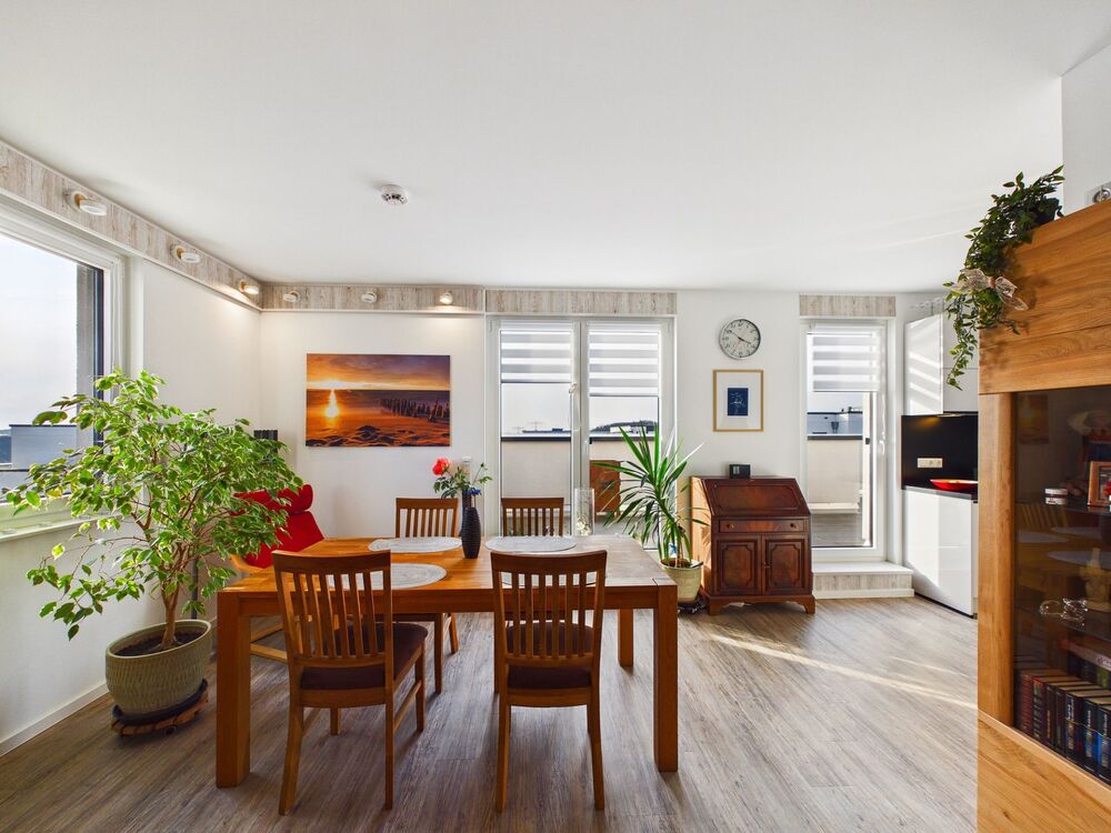 Ihre neue, sehr gepflegte Eigentumswohnung aus dem Baujahr 2021 befindet sich in einer modernen Wohnanlage, die durch die Bonava GmbH, eine der führenden Wohnprojektentwickler in Europa errichtet wurde. Die Wohnung hat eine über den normalen Standard hinausgehende Ausstattung in Punkto Sicherheit und Komfort. Die großen Fensterflächen und die Lage im Dachgeschoss schaffen eine freundliche und lichte Wohnatmosphäre. Auf der super großen Dachterrasse können Sie Pflanzbereiche schaffen, eine Sitzgruppe platzieren und Fitnessgeräte für das Training an frischer Luft aufstellen. Vom Wohnungsflur sind es nur ein paar Schritte bis zur Küche, die offen zum Wohn- und Esszimmer gestaltet ist. Aus dem Küchenbereich sind Sie auf kurzem Wege auf der Terrasse oder am Essplatz. Das Tageslichtbad ist neben WC und Waschbecken mit einer bodengleichen Dusche ausgestattet. Im Bad ist auch der Stellplatz für Waschmaschine und Trockner vorbereitet. Das Schlafzimmer ist optimal Richtung Osten orientiert.