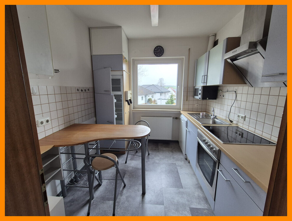 Die Wohnung hat drei Zimmer (Wohn-/ Esszimmer, Schlafzimmer und Kinderzimmer), Küche und ein Bad mit Dusche und Badewanne. Die Wohnung wird mit einer Einbauküche vermietet. Des Weiteren besitzt die Wohnung ein Kellerabteil, ein Gäste-WC und ein Balkon. Die Wohnung liegt im Obergeschoss. Zu der Wohnung gehört ein kostenloser Stellplatz.