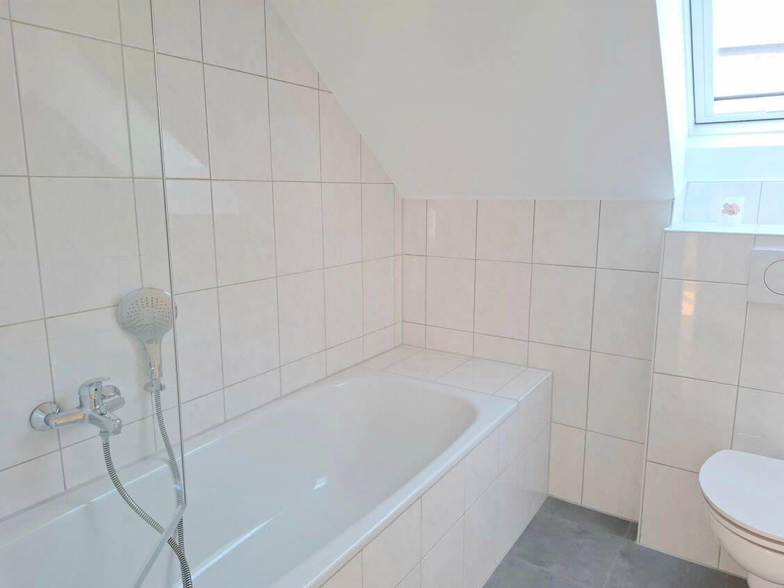 Das Badezimmer verfügt über eine Badewanne sowie ein Fenster und bietet somit eine gute Belüftungsmöglichkeit. In der Wohnung sind pflegeleichte Vinyloberböden verlegt. Moderne Fenster mit 3-fach-Verglasung tragen zu einem angenehmen Wohnklima und einer guten Energieeffizienz bei.
