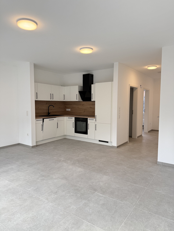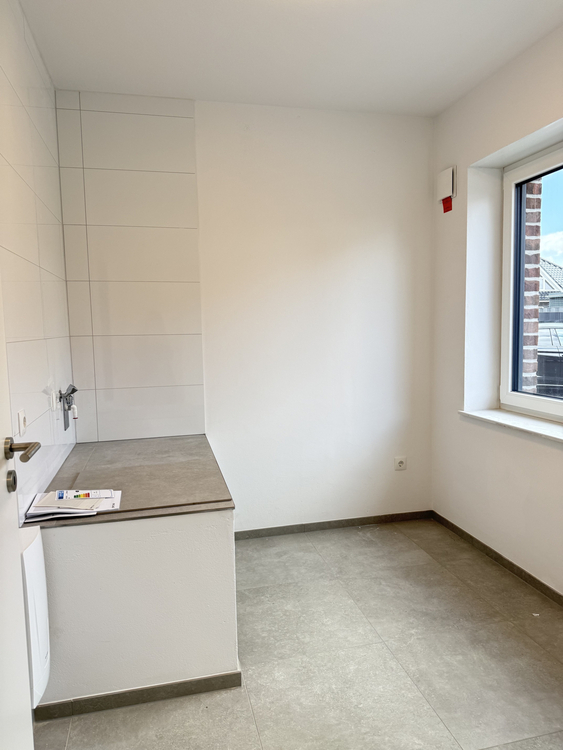 Im Erdgeschoss empfängt Sie ein Wohnbereich mit offener Einbauküche, die gegen eine monatliche Gebühr von 50 EUR zur Verfügung steht. Von hier aus gelangen Sie direkt auf die Terrasse. Ergänzt wird das Erdgeschoss durch ein Gäste-WC sowie einen Hauswirtschaftsraum mit Waschmaschinenanschluss.