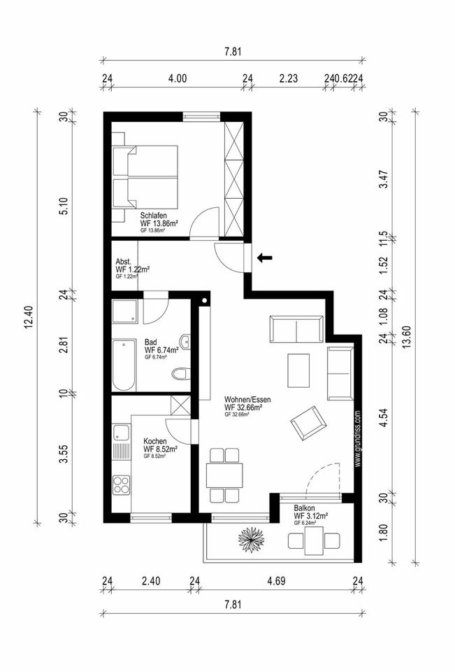 Zimmeranzahl :2 Gesamtgröße :ca. 66,00 m² Stand vom :02.04.2026