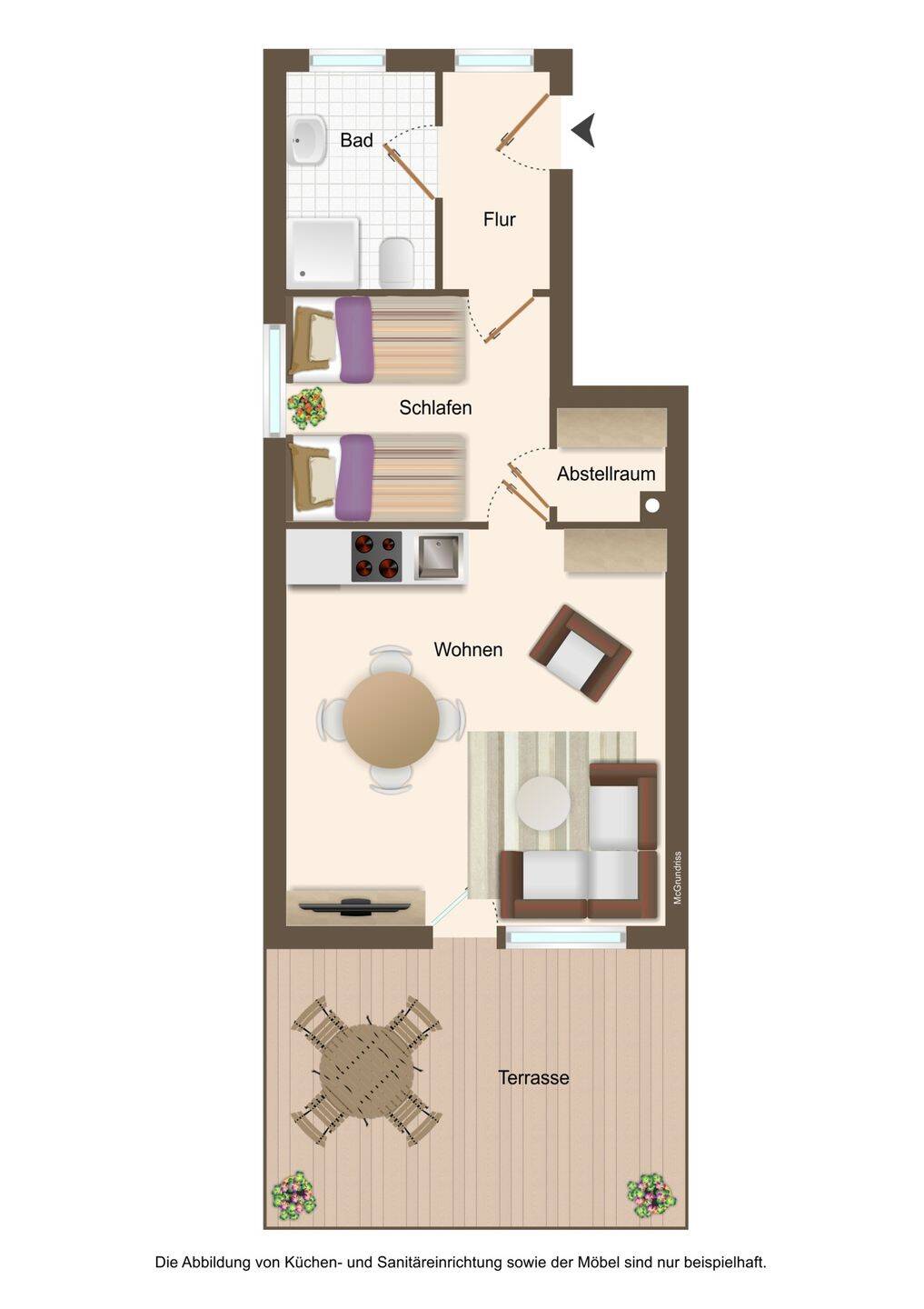 Sie befinden sich hier: Sofort bezugsbereit! Möblierte 2-Zi.-Wohnung im EG mit Terrasse, Gemeinschaftsgarten und Stellplatz in Grömitz - 26RKBDIZ8A27 | 1A-Immobilienmarkt.de