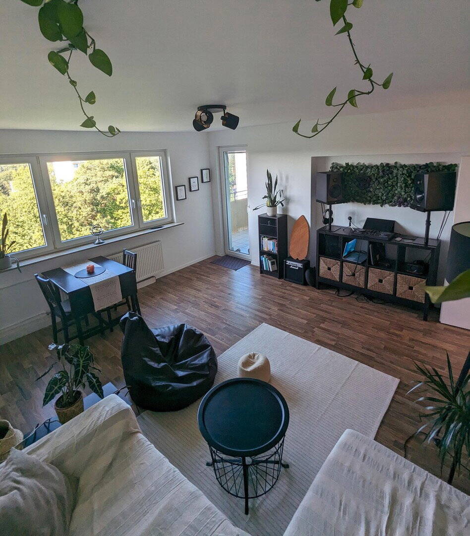 helles Wohnzimmer mit Balkon - sanierte 3-Zimmerwohnung mit sonnigem West-Balkon & Stellplatzmöglichkeit??