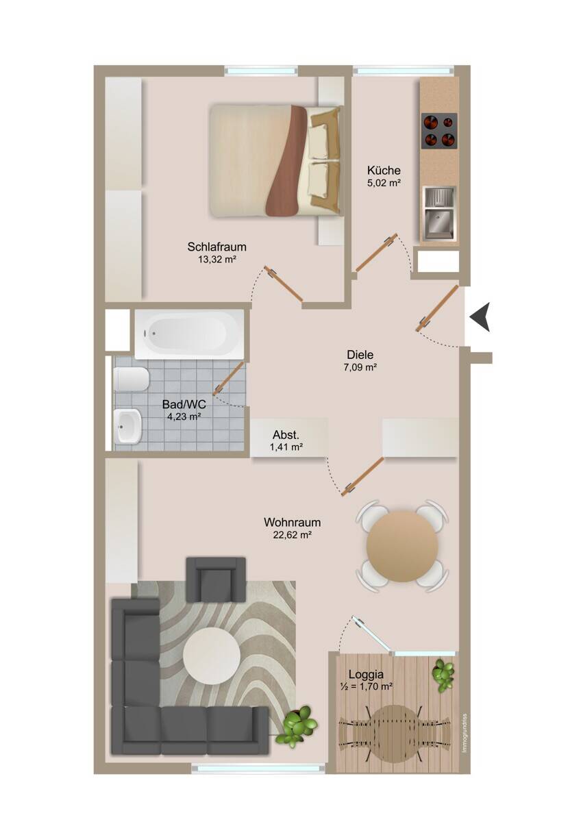Wohnfläche:ca. 55,00 m²