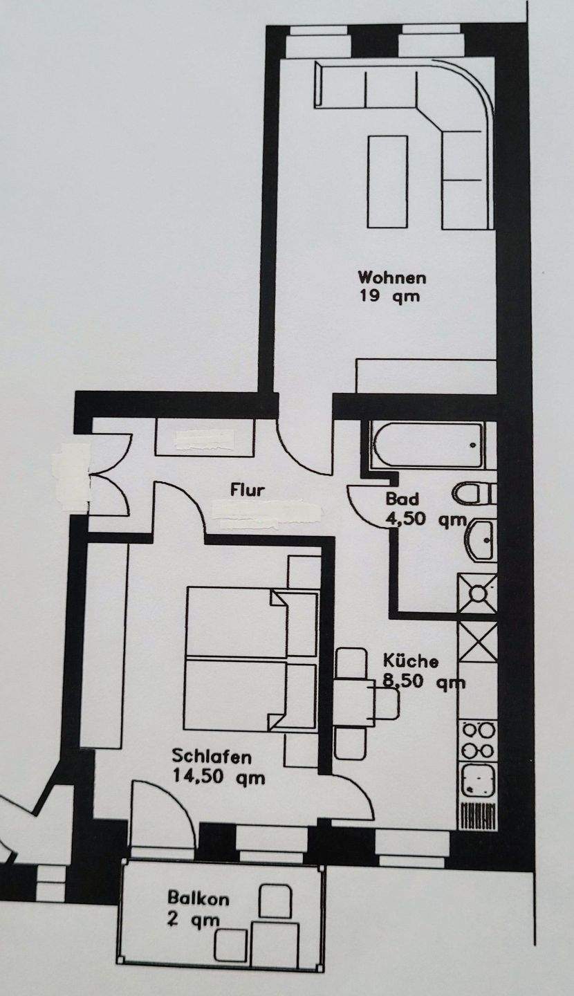 vermietete 2-Raumwohnung mit Balkon