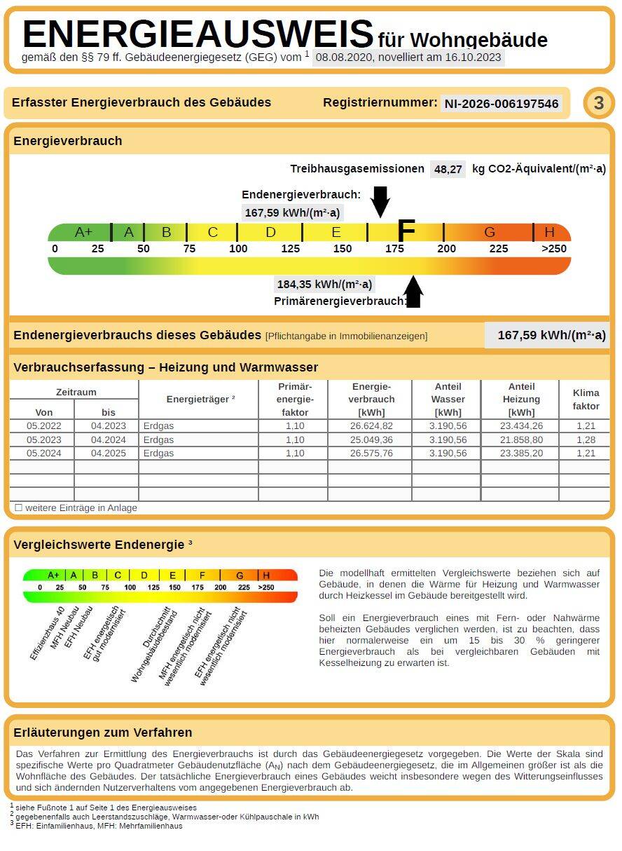 Energieverbrauchkennwert:167,95 kWh/(m²·a) kWh/(m²·a)