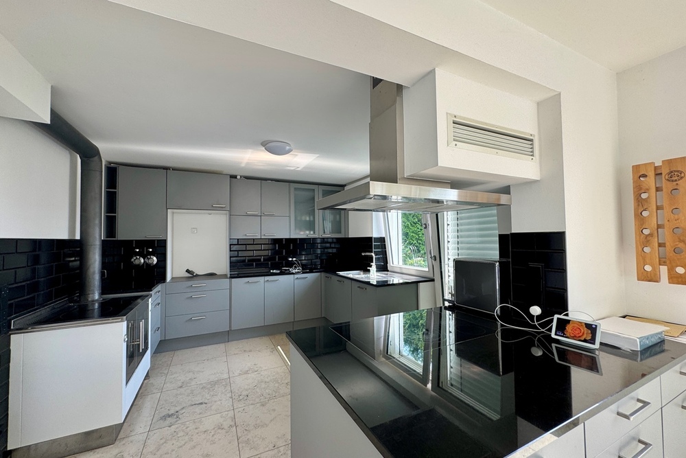 Die offen gestaltete Küche und der dazugehörige Essbereich mit direktem Zugang zur großen Terrasse ist der Mittelpunkt des Hauses und vermittelt ein modernes, großzügiges Wohngefühl. Von hier aus genießt man einen schönen Blick in den liebevoll angelegten Garten.