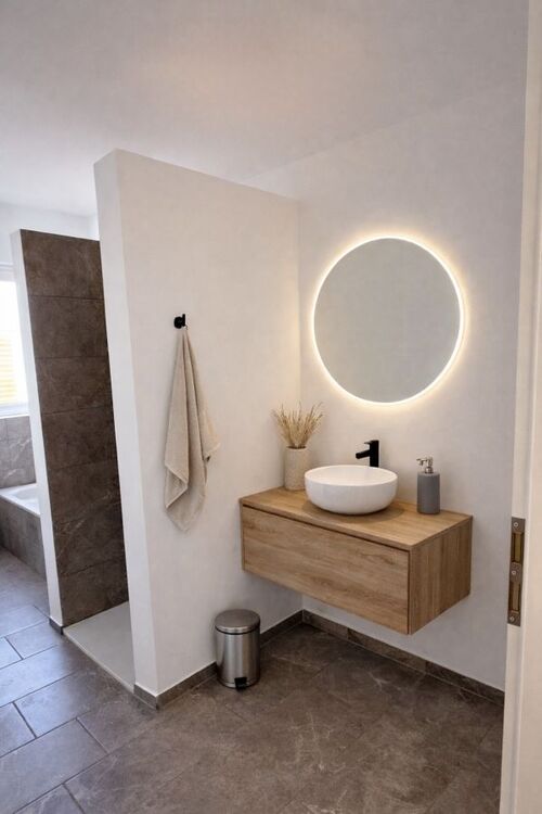 Modernes Badezimmer mit Badewanne und ebenerdiger Dusche