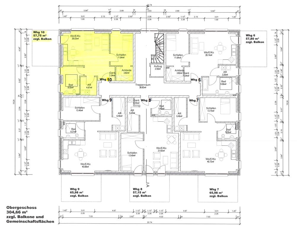 Die Wohnfläche der Wohnung Nr. 10 beträgt 65, 75 m².